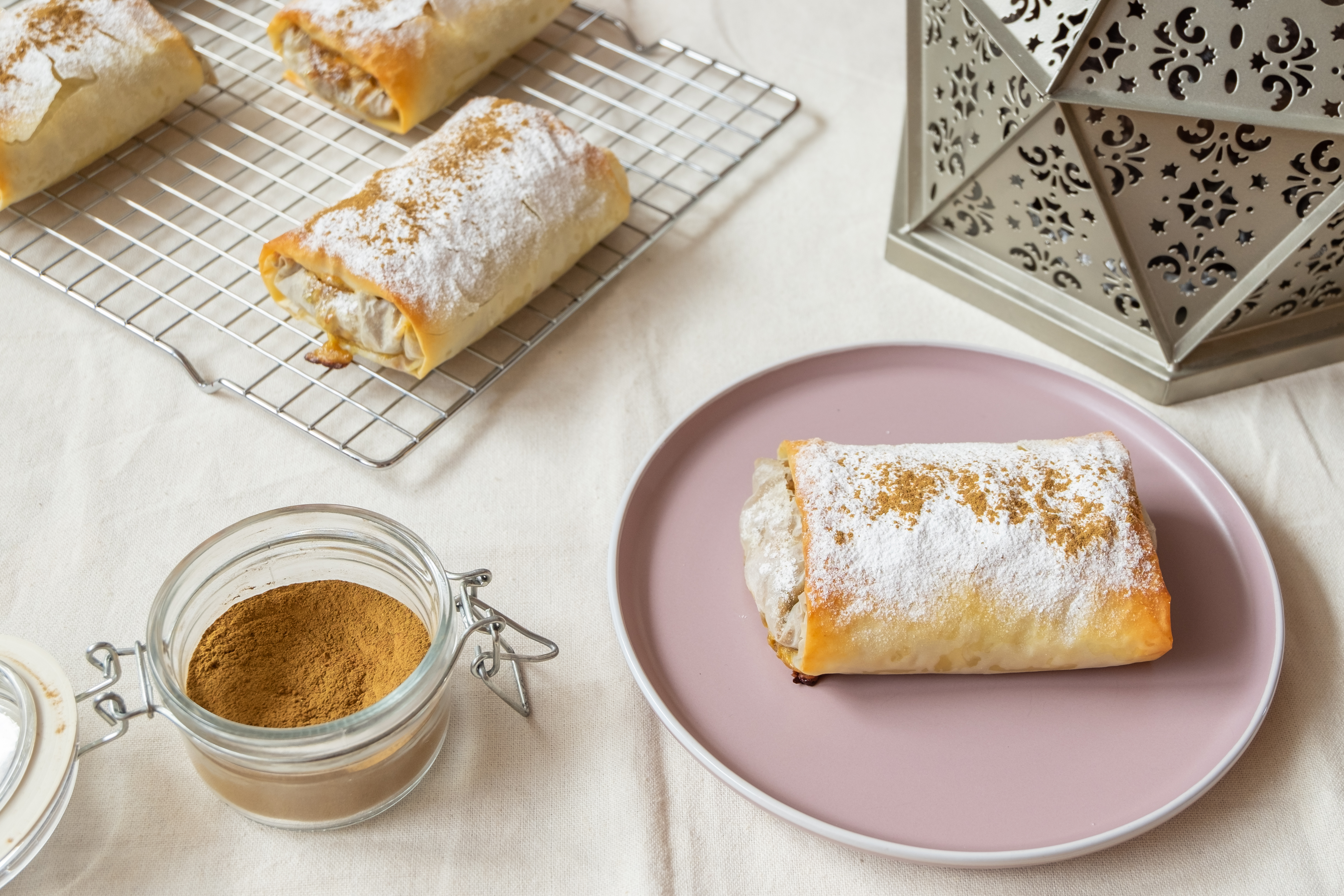 - Azúcar glas y canela en polvo para espolvorear por encima.