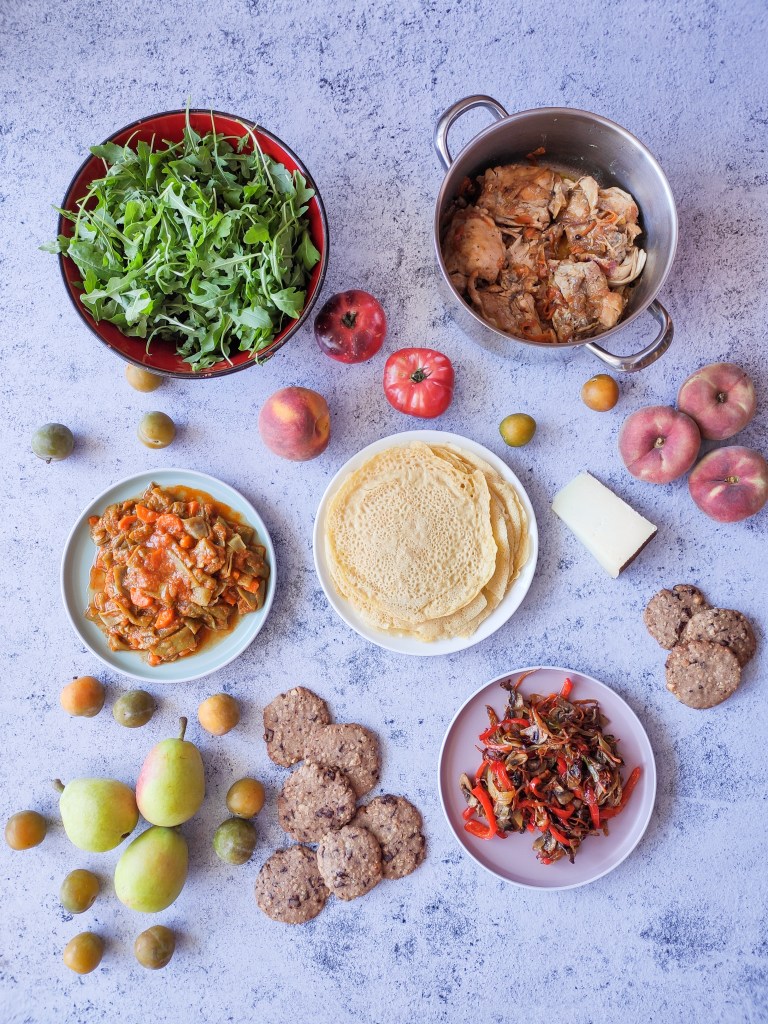 Platos refrescantes, llenos de color y sabor, muy sencillos, sin largas horas de dedicación en la cocina y repletos de fruta de temporada han sido las máximas en estos menús que he preparado durante el verano.