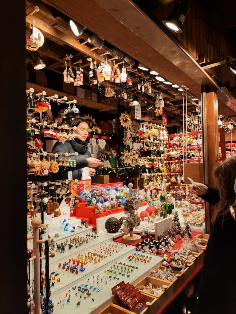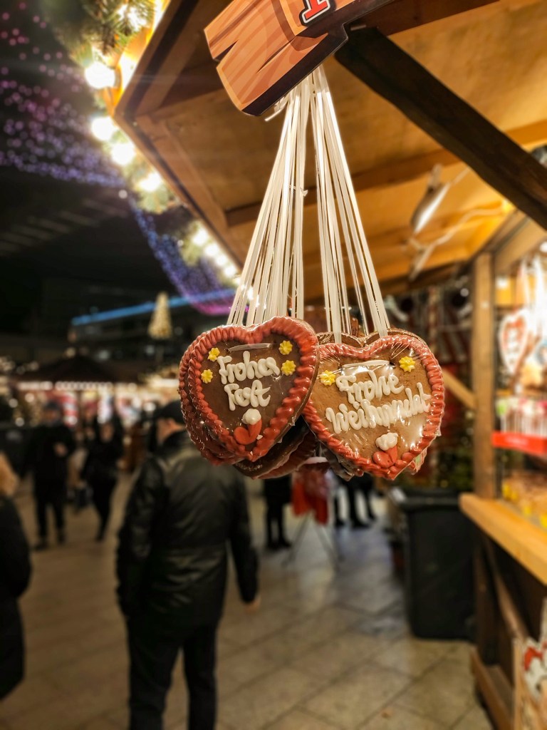 ¿Y qué se come o bebe en estos mercadillos? Lo más típico que encontrarás son las salchichas, los panes rellenos de queso y jamón o champiñones, flammkuchen la pizza alemana, quarkbällchen una masa frita hecha con queso quark tipo buñuelo, muy esponjosa y rica, los mutzenmandeln pequeños bocados de masa frita de almendras que recuerdan a nuestra masa de rosquillas, stollen, aunque también encontrarás un popurrí de puestos de comida callejera de muchos otros países entre los que me sorprende la cantidad de puestos de churros disponibles en todos ellos.